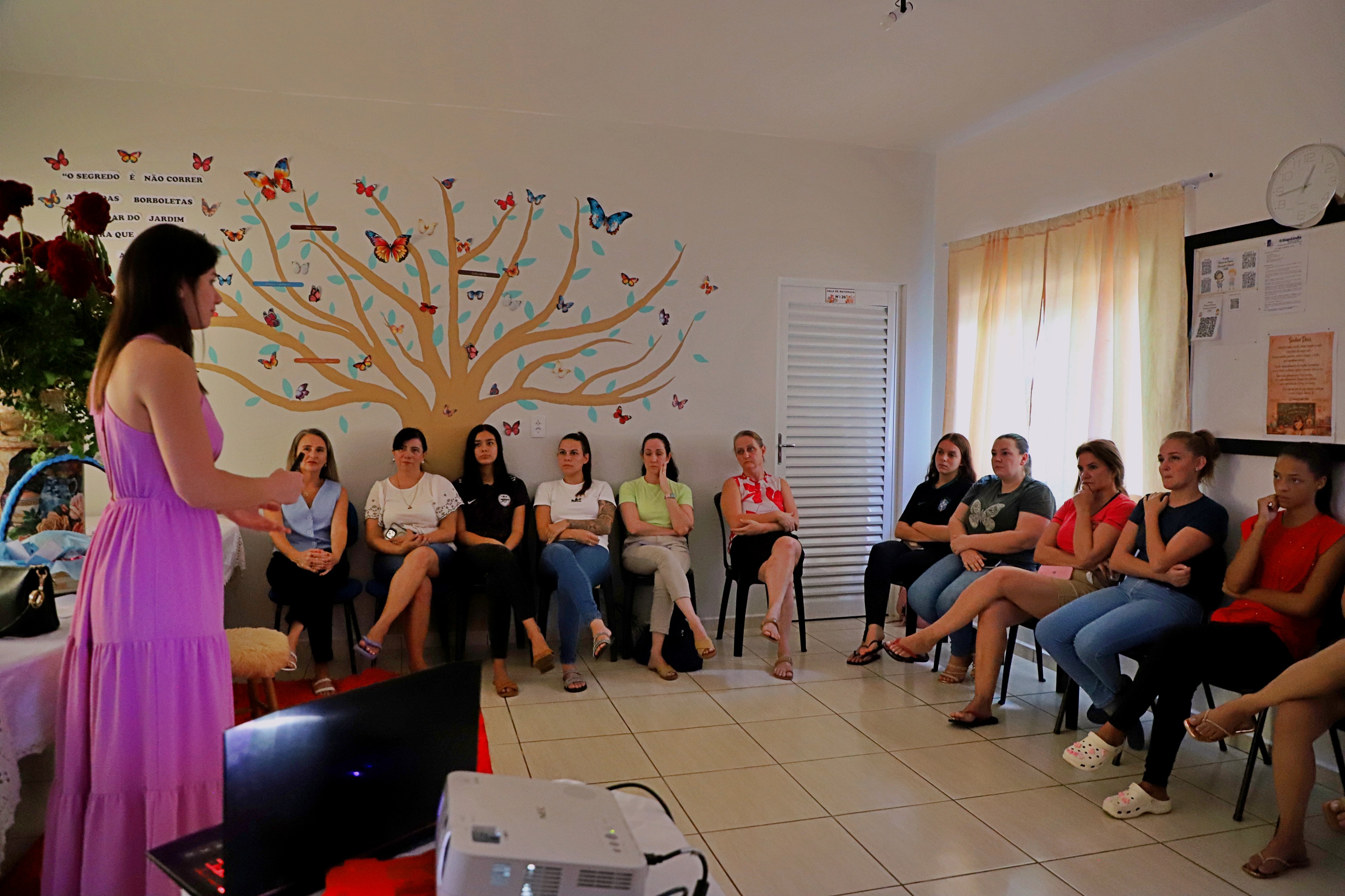 Além da palestra, a instituição preparou uma recepção especial para as mulheres que levaram as crianças ao CMEI, com um painel motivacional com uma mensagem de valorização em homenagem à data. A ação buscou reforçar o reconhecimento da importância das mulheres na comunidade escolar, fortalecendo os vínculos entre a instituição, as famílias e os alunos.