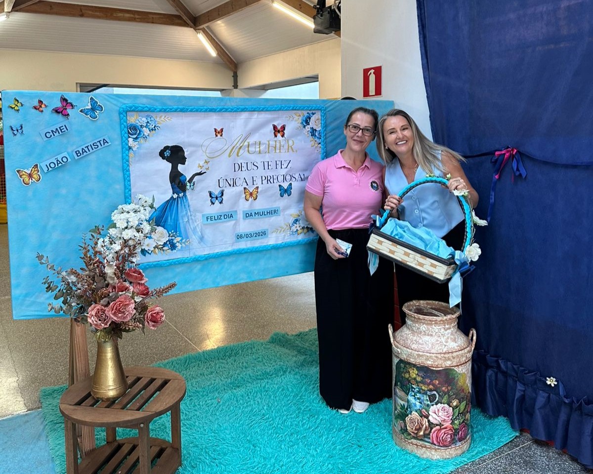 Em comemoração ao Dia Internacional da Mulher, o CMEI João Batista Felicíssimo Ribeiro realizou uma programação especial voltada à valorização das mulheres que atuam na instituição. A iniciativa foi conduzida pela diretora Solange do Carmo Simon e pela coordenadora Marisônia Batista da Silva, que organizaram um momento de acolhimento e reflexão para todas as profissionais da equipe escolar. A atividade destacou a importância das mulheres em diferentes funções dentro do ambiente educacional.
