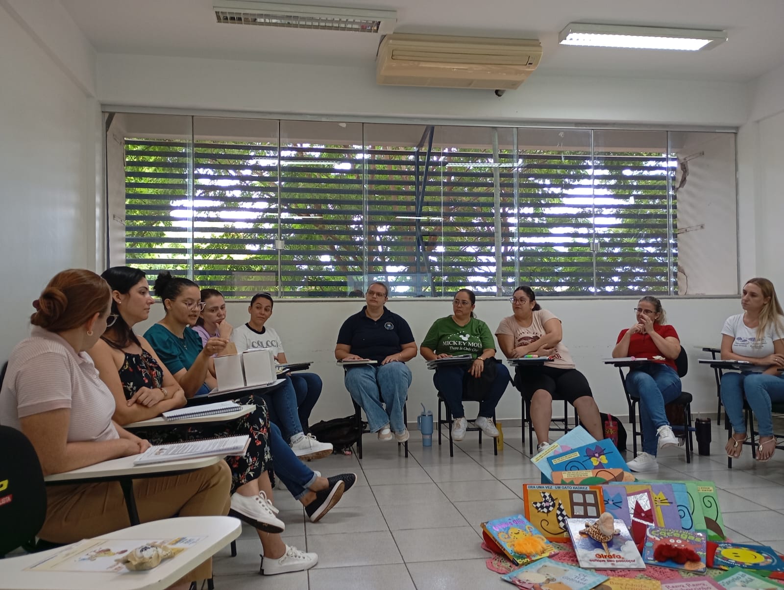 Durante o encontro, as professoras também participaram de momentos de reflexão sobre suas trajetórias pessoais e profissionais, discutindo concepções de infância, docência e as especificidades do trabalho pedagógico com crianças pequenas.