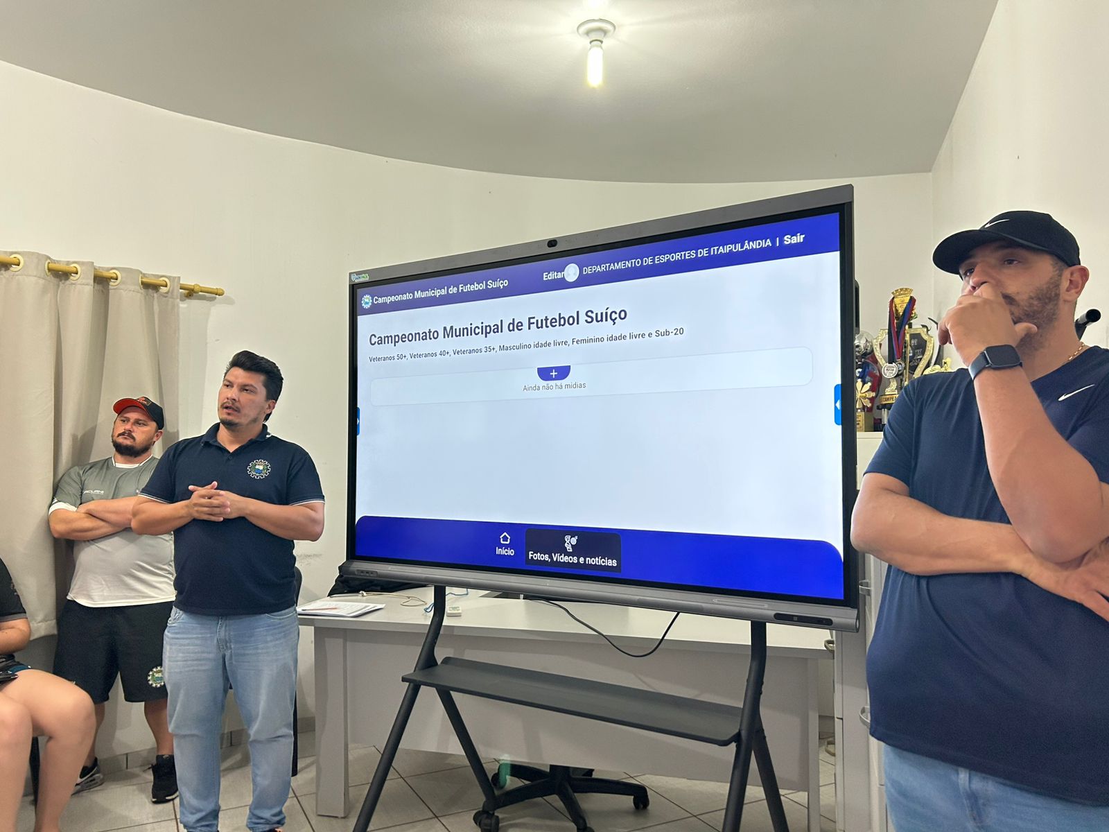 Na noite de terça-feira (24), o Departamento de Esportes realizou o congresso técnico que marcou o alinhamento oficial das competições municipais de futebol sete. O encontro contou com a presença do secretário e do diretor de esportes, da equipe organizadora e de representantes das equipes participantes, reforçando a integração entre os times e a transparência na organização dos torneios.