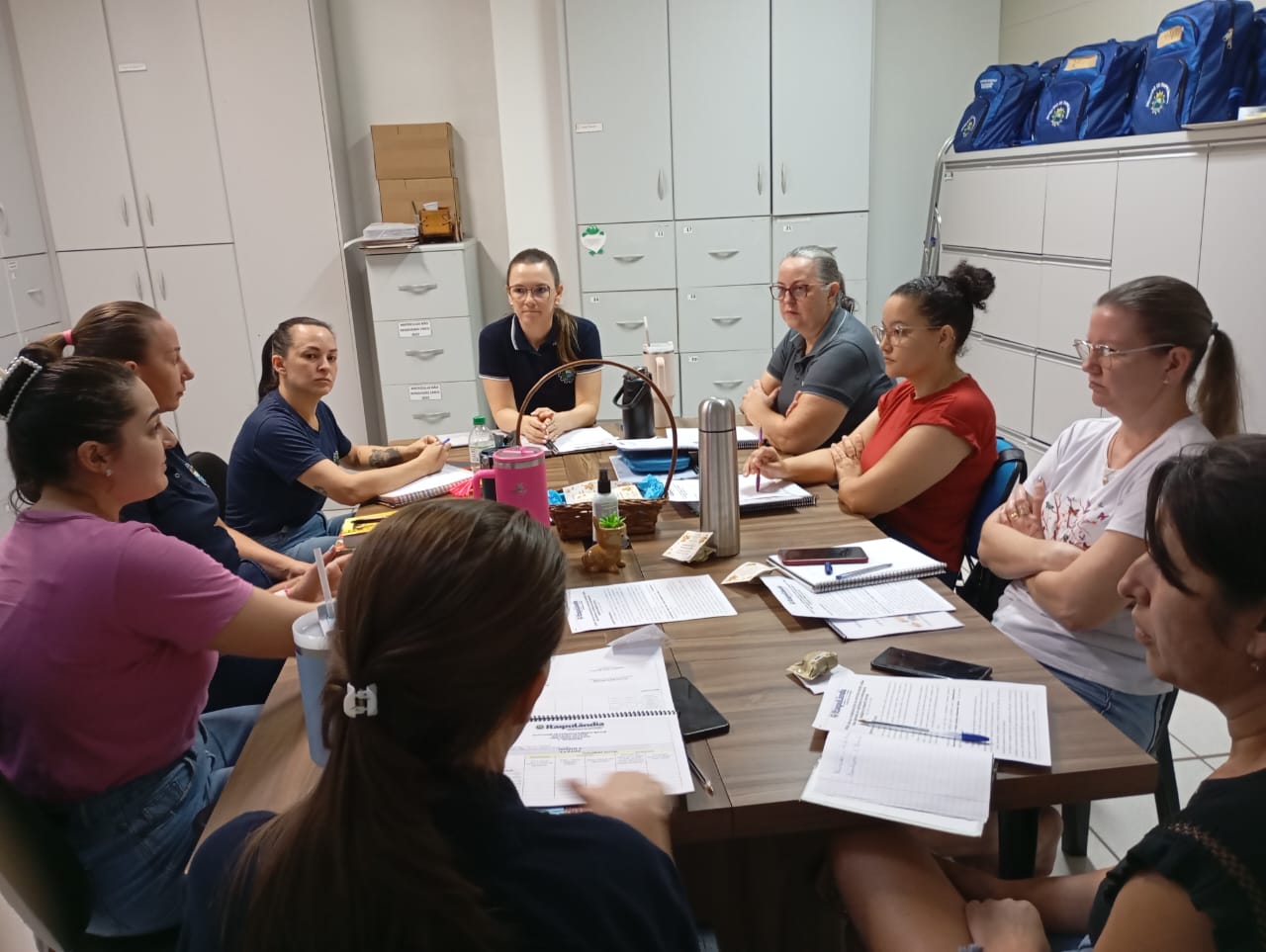 Na última terça-feira (24), a Secretaria Municipal de Educação de Itaipulândia realizou uma reunião pedagógica com as coordenações dos Centros Municipais de Educação Infantil (CMEIs). O encontro foi conduzido pela assessora educacional da Educação Infantil (0 a 3 anos), juntamente com a assessora educacional da Educação Especial e a Equipe Especializada de Apoio Pedagógico (EEAP), tendo como pauta principal a entrega da sondagem referente ao primeiro trimestre.