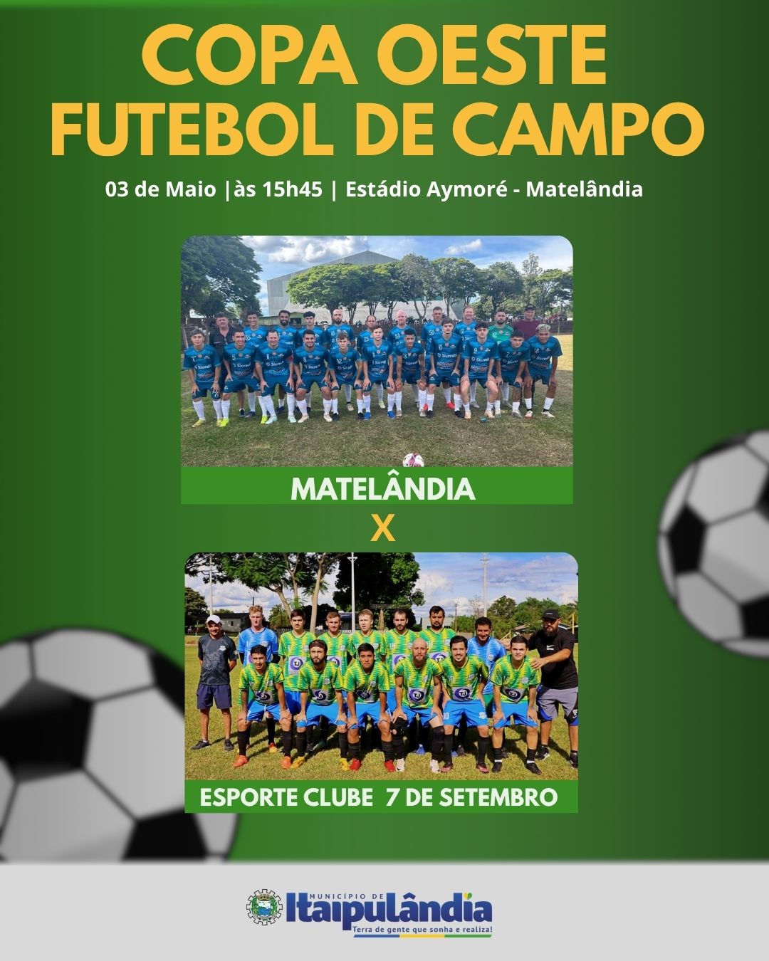 A equipe do Sete de Setembro entra em campo neste domingo, 03 de maio, para um confronto decisivo pelas quartas de final da Copa Oeste. O duelo será fora de casa, no Estádio Aymoré, em Matelândia, com início às 15h45.