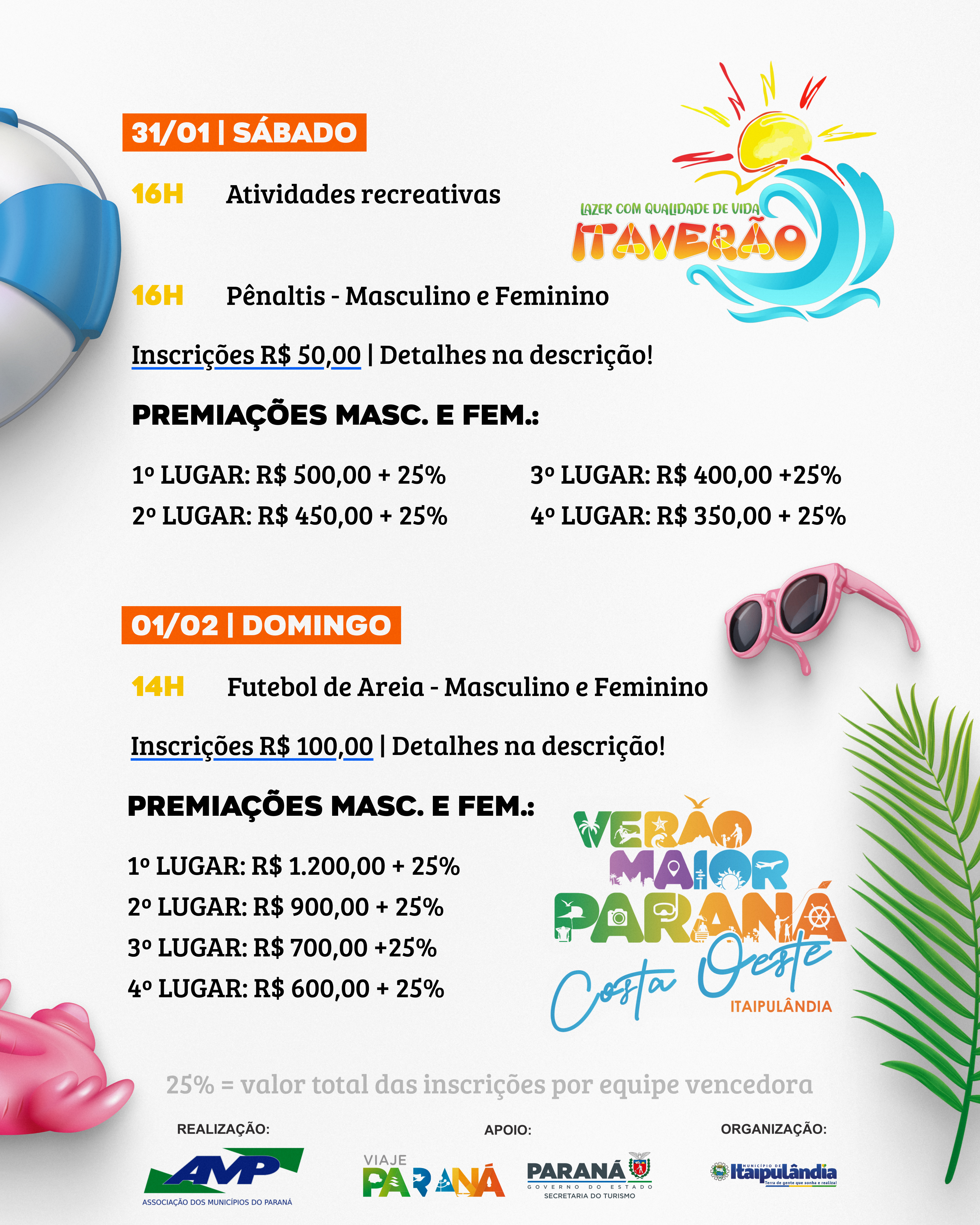 🔹 14h – Futebol de Areia – Masculino e Feminino