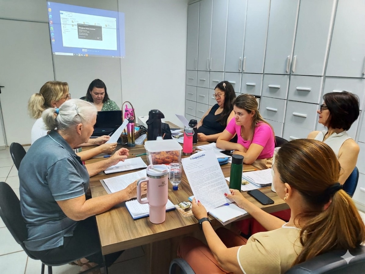 Os encontros aconteceram nas dependências da Secretaria de Educação, totalizando nove momentos de formação e alinhamento ao longo do mês.