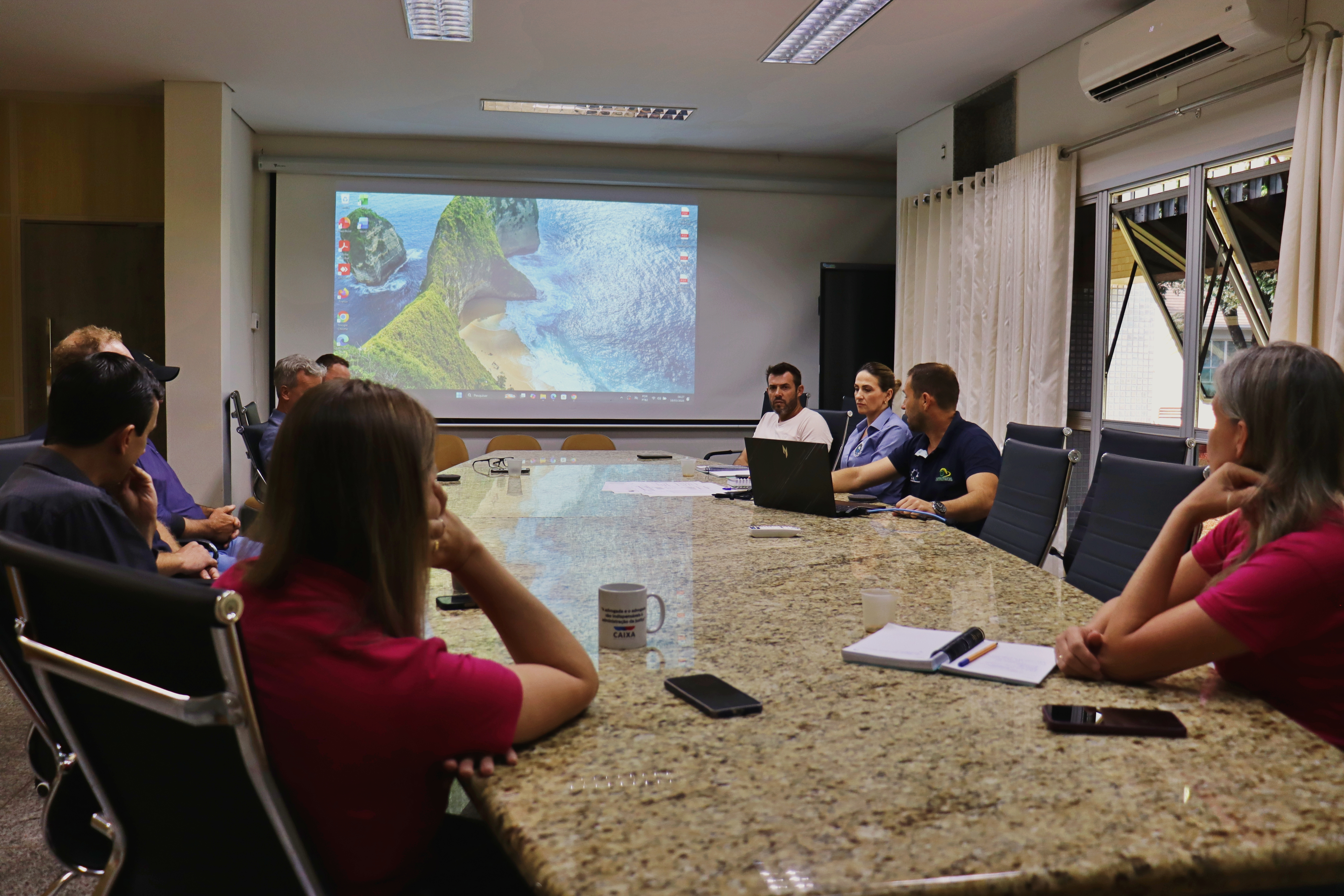 A Secretaria Municipal de Meio Ambiente, em parceria com a empresa LLA Engenharia, realizou em 18 de março de 2026 uma reunião presencial com gestores municipais e equipes técnicas responsáveis pela gestão de resíduos sólidos. O encontro, realizado na sala de reuniões do Paço Municipal, contou com a presença do empresário ambientalista Letieri Angeli, que apresentou projetos técnicos e as etapas para a regularização da área de destinação de resíduos inertes e volumosos.