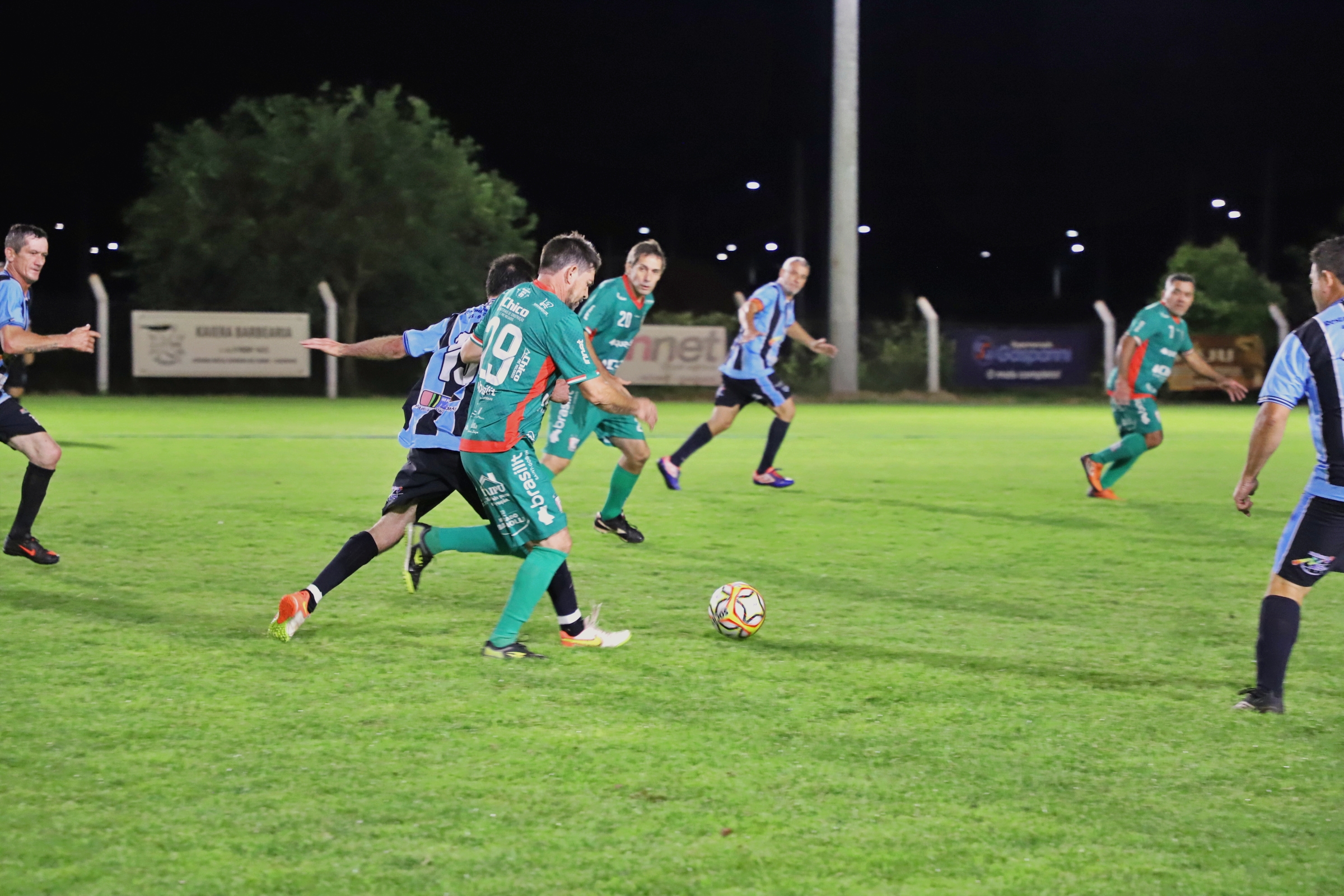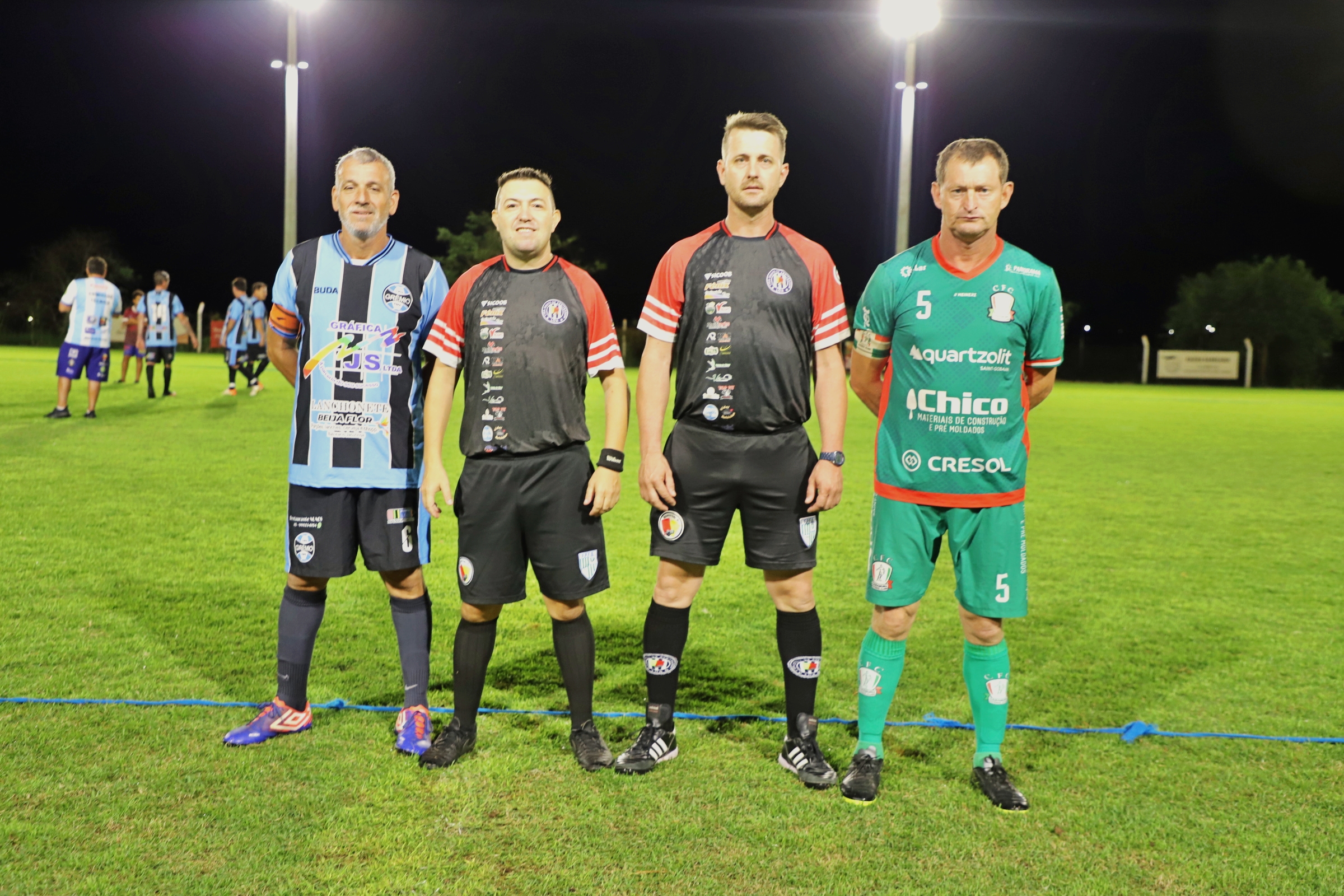 A abertura da primeira rodada do Campeonato de Futebol Suíço 45+ movimentou a noite da última quinta-feira (09), no campo Sargento Dias, no bairro Caramuru. O evento reuniu atletas e torcedores e deu início à competição com duas partidas, marcadas por bom público e clima de integração entre os participantes.