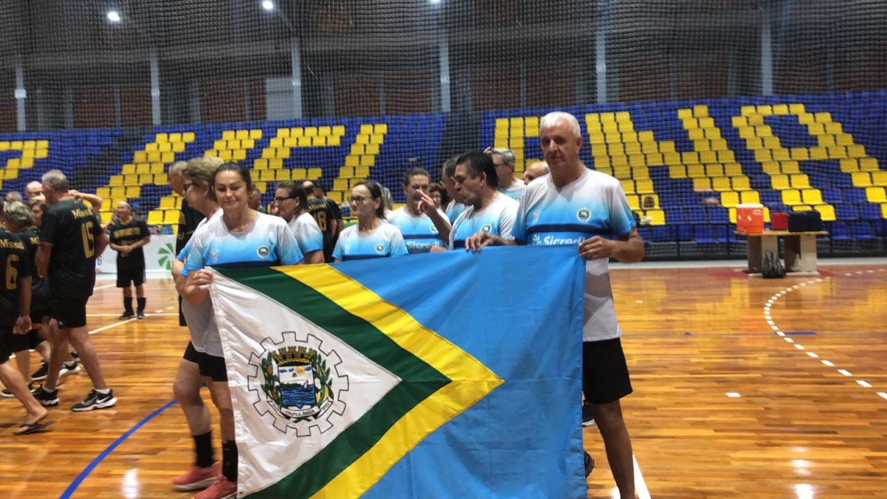 Idosos de Itaipulândia brilham na abertura do Circuito Vôlei Câmbio em Santa Helena.